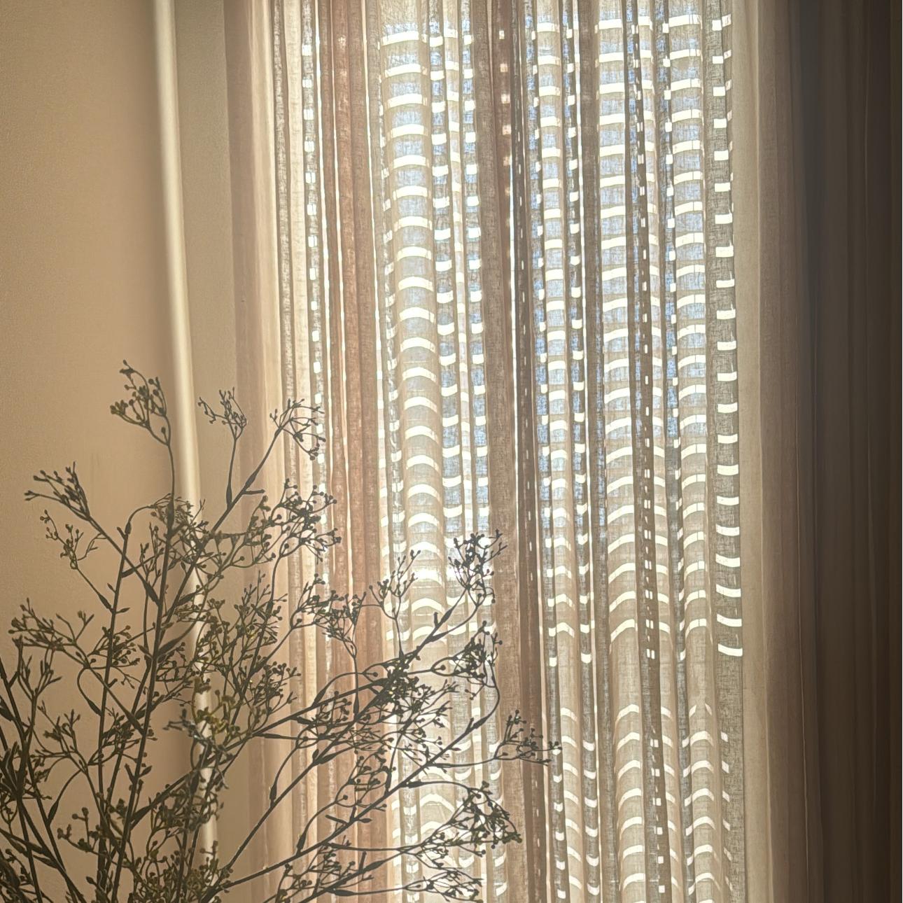 Our Cloud curtain is a perfect combination of breezy sheer and natural linen. With 43% linen fabric, it offers a soft touch and organic linen spots, providing your space with a breathable and natural appearance. Additionally, harnessing the properties of sheers, it evenly diffuses light, creating an easy and relaxing atmosphere. which has both the freshness and heaviness of linen. For ultimate softness and extra comfort.