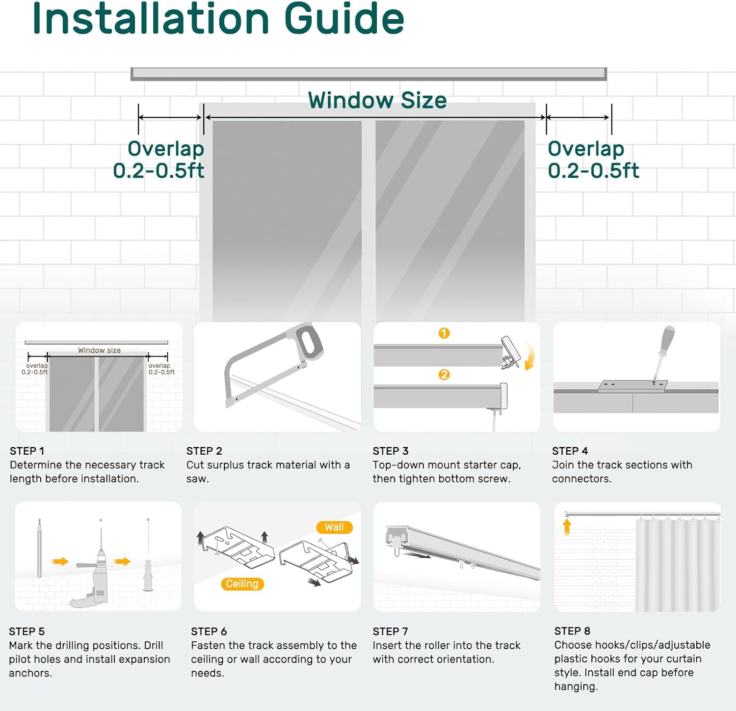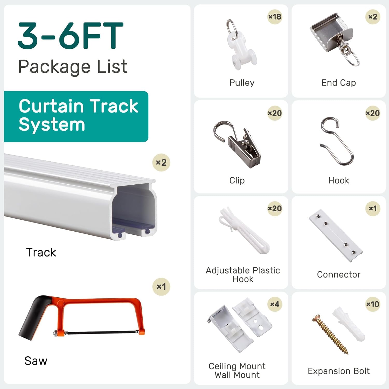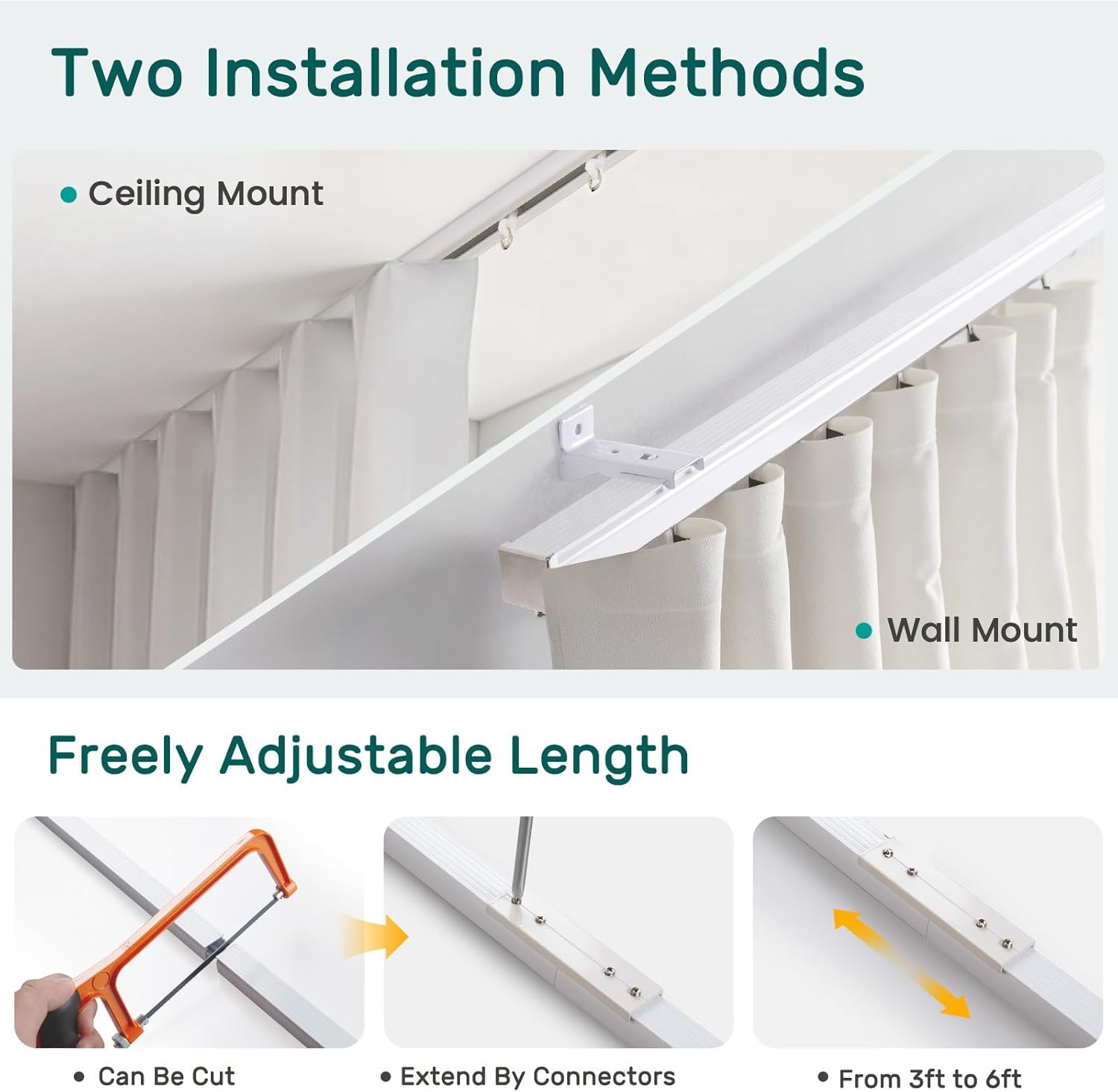 Curtain Track featuring Silent Strip, Ceiling/Wall Mount Curtain Rail White