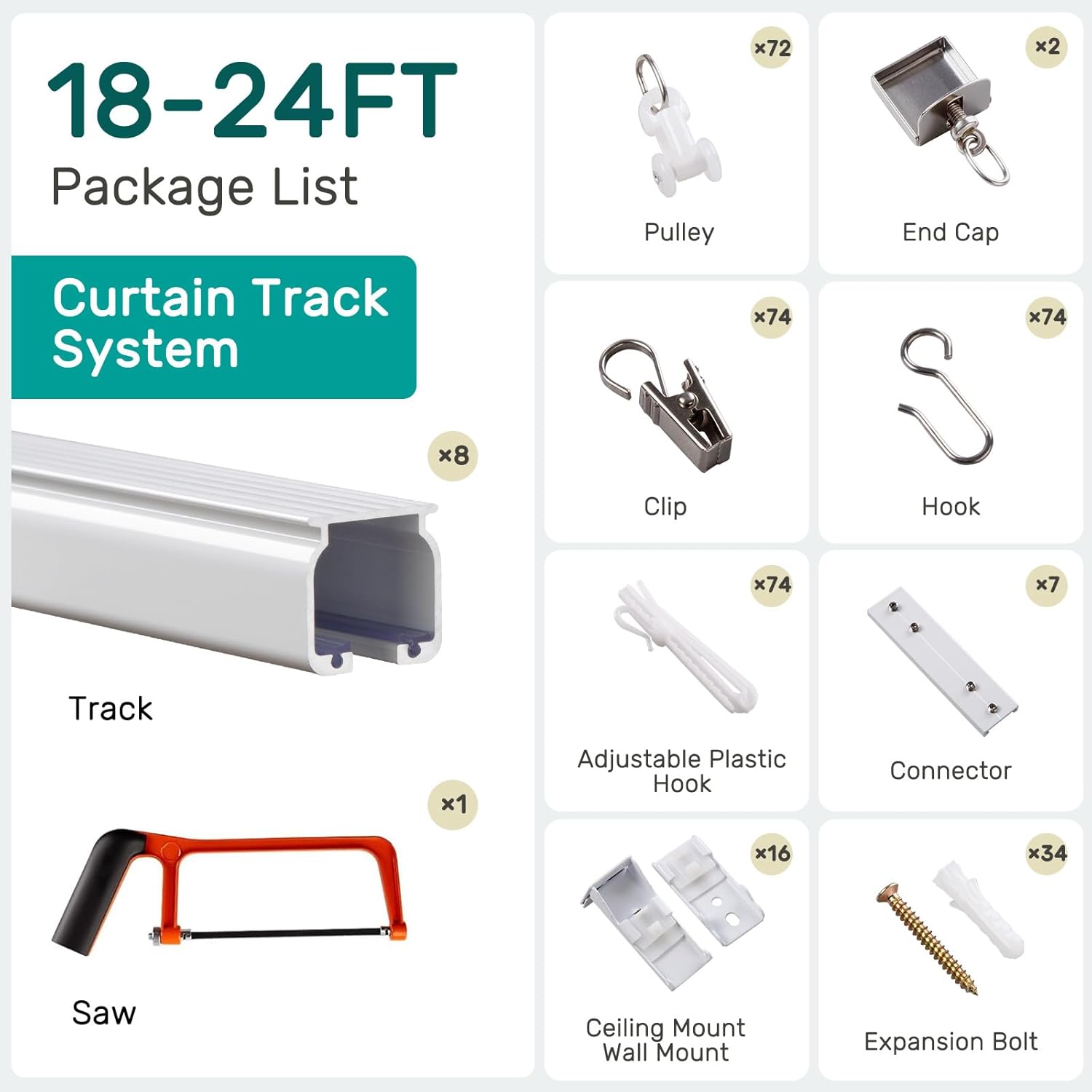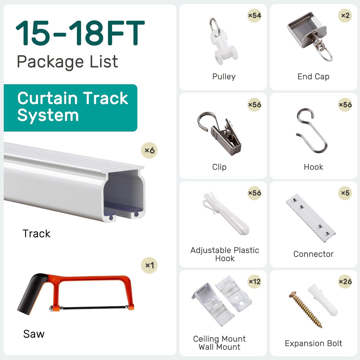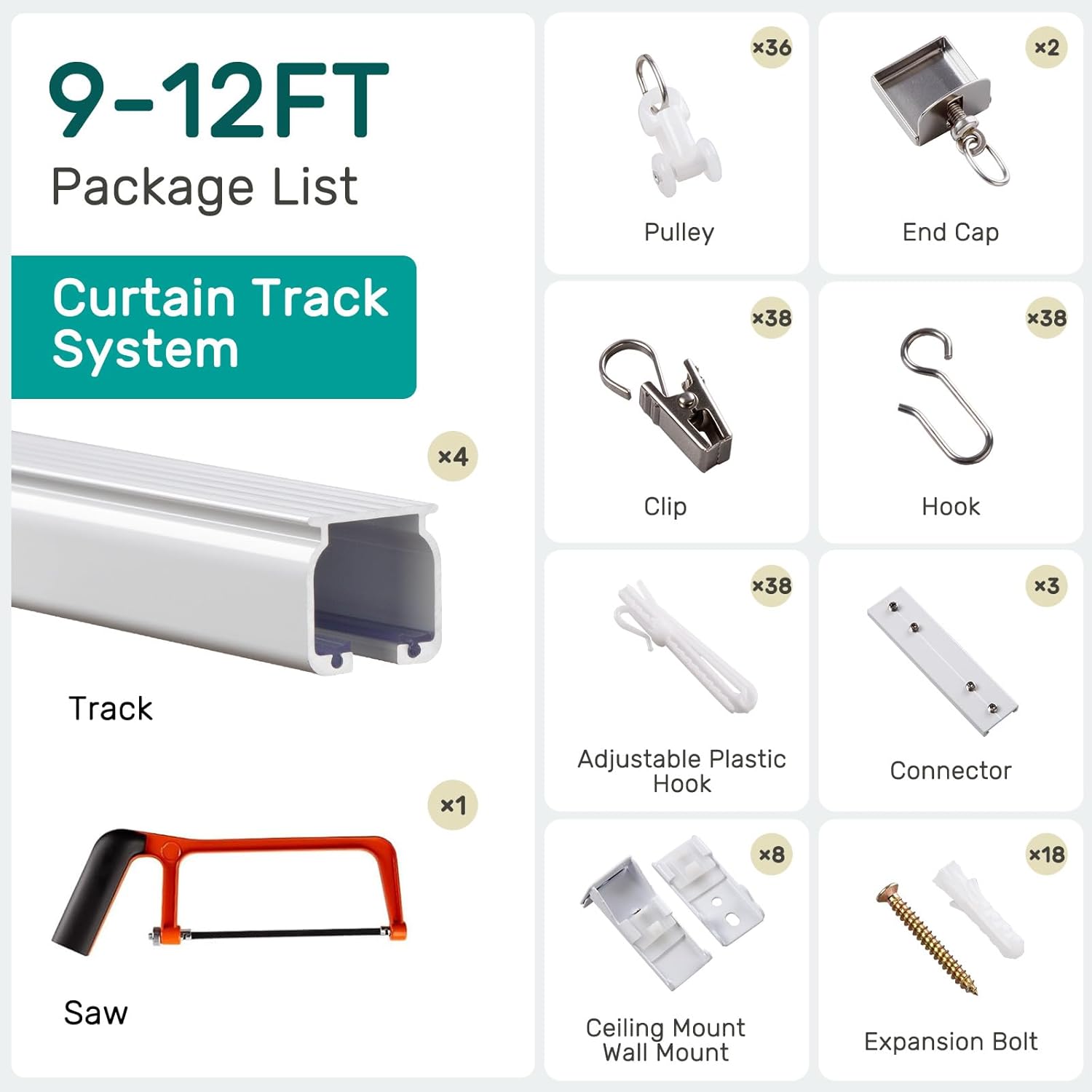 Curtain Track featuring Silent Strip, Ceiling/Wall Mount Curtain Rail White