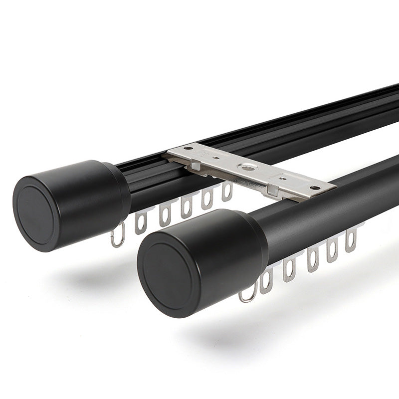 Custom Single / Double Curtain Track Rod Traverse Rod with Hooks for Windows Heavy Duty