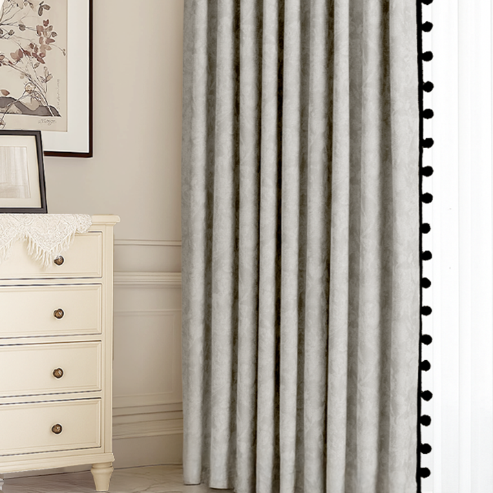 Pairing the jacquard fabric with a delicate trim border adds a refined, custom-tailored touch to your window treatment. The soft shimmer of the fabric combined with intricate lace or fringe edging brings depth and sophistication to any room. Whether you prefer a classic or romantic look, this thoughtful combination enhances the overall aesthetic and makes your curtains feel truly bespoke.