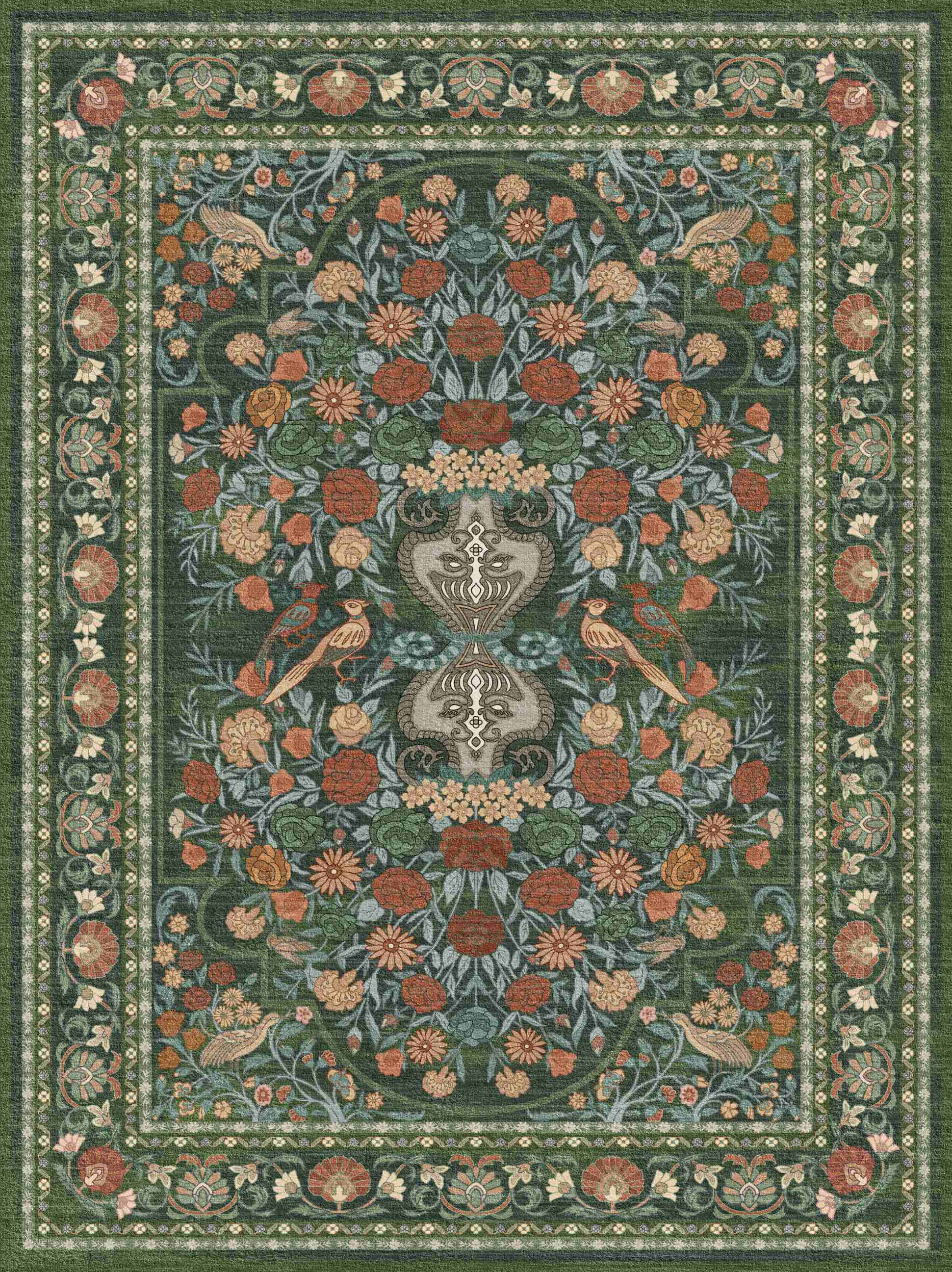 A garden of timeless grace, woven for modern living. Edeave centers your space with its lush, ornate field of flowers, framed for a polished finish. Each colorway, from the delicate Pink to the stately Black, tells a different season of the same beautiful story. Designed to be a versatile centerpiece, it brings the harmonious abundance of an eternal spring into your home.