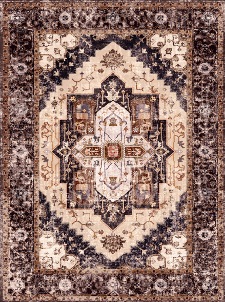 Eternity | Custom Distressed Printed Rugs Washable Print Carpet Runner Chocolate | Multi Color
