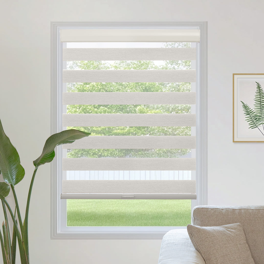 Transform your space with our new double shades, where light dances gently through delicate layers. The soft sheer diffuses sunlight, creating a dreamy, airy ambiance, while the zebra design adds a modern, dynamic touch to your windows. Perfect for living rooms, bedrooms, or any corner that deserves a serene yet stylish atmosphere, these blinds blend elegance and function effortlessly.