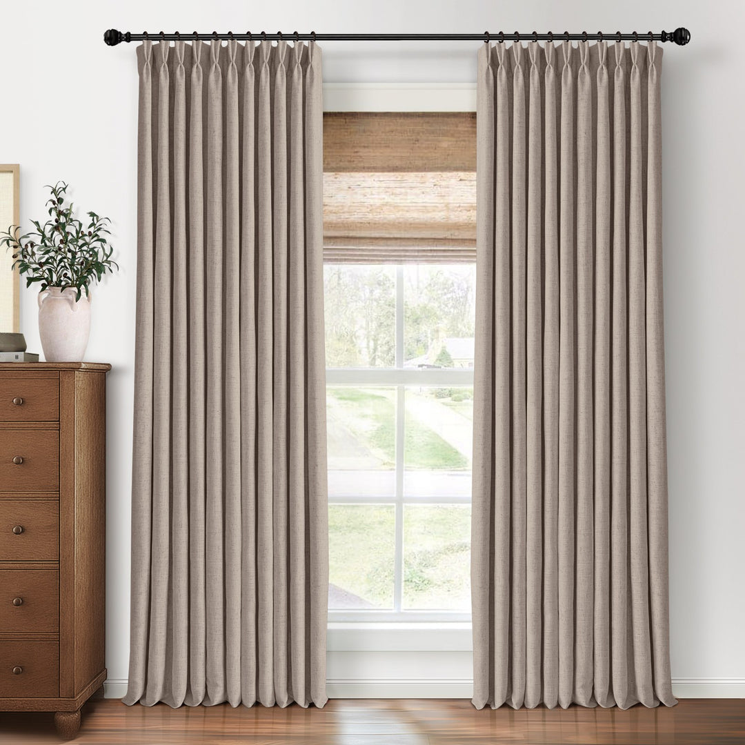 Grey Beige | Luxe Semi Sheer Luxury Linen Sheer Curtains Custom Drapes | Pleated