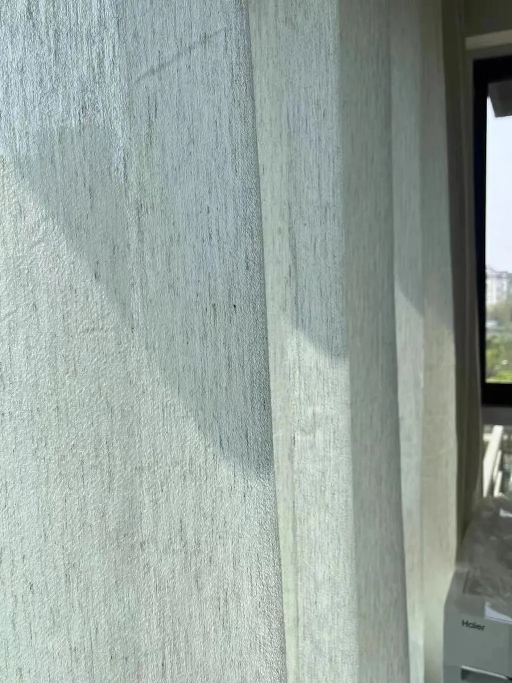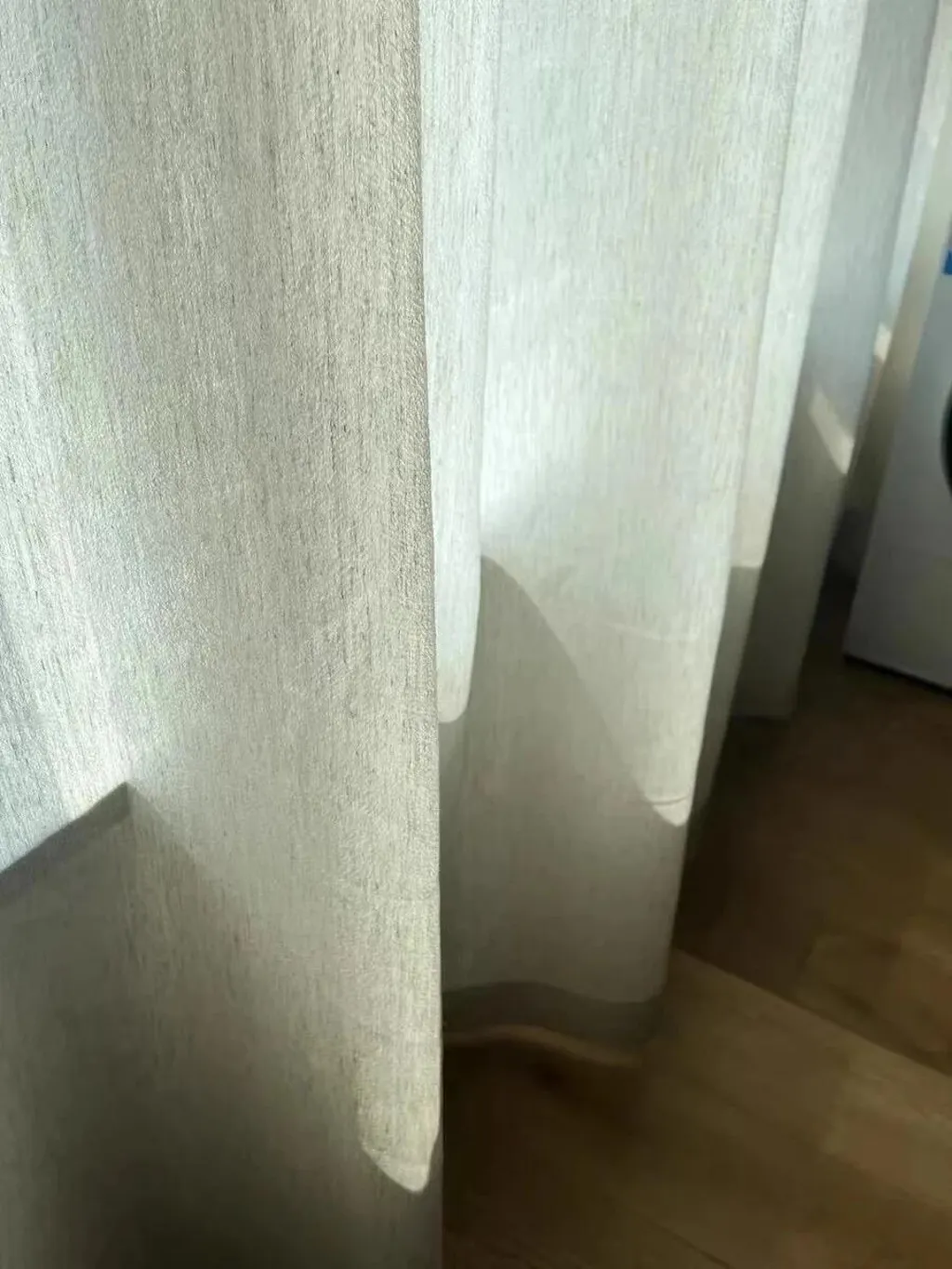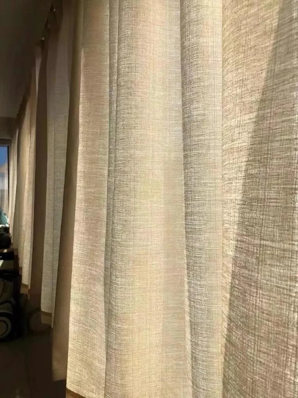 Second, the impact of fabric form and background: When folded, the fabric is smooth; when hung, folds create light and shadow, making the color appear darker or uneven. Additionally, when the curtains are installed next to walls or furniture, the background color sets off and amplifies tonal deviations.