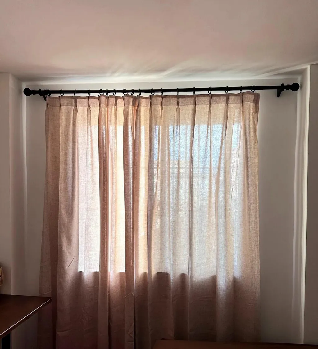 Please check if your curtain rings are twisted 180 degrees. Twisted rings can cause the pleats to twist, making the curtains look uneven. Before hanging the curtains on the rod or track, ensure all pleats are aligned in the same direction. Proper installation will help the memory training effect show neatly.