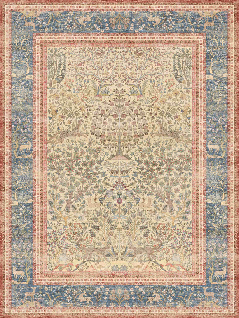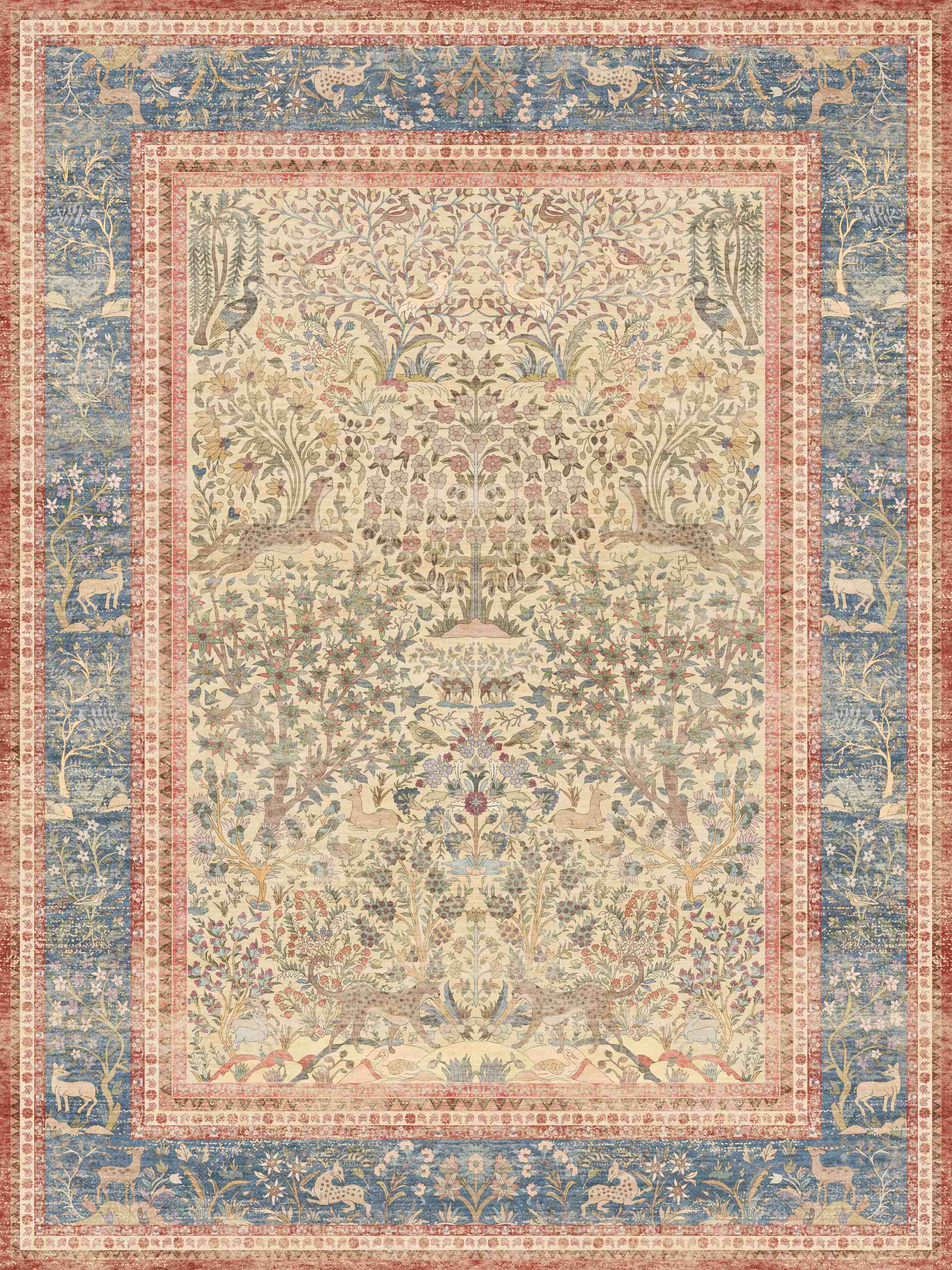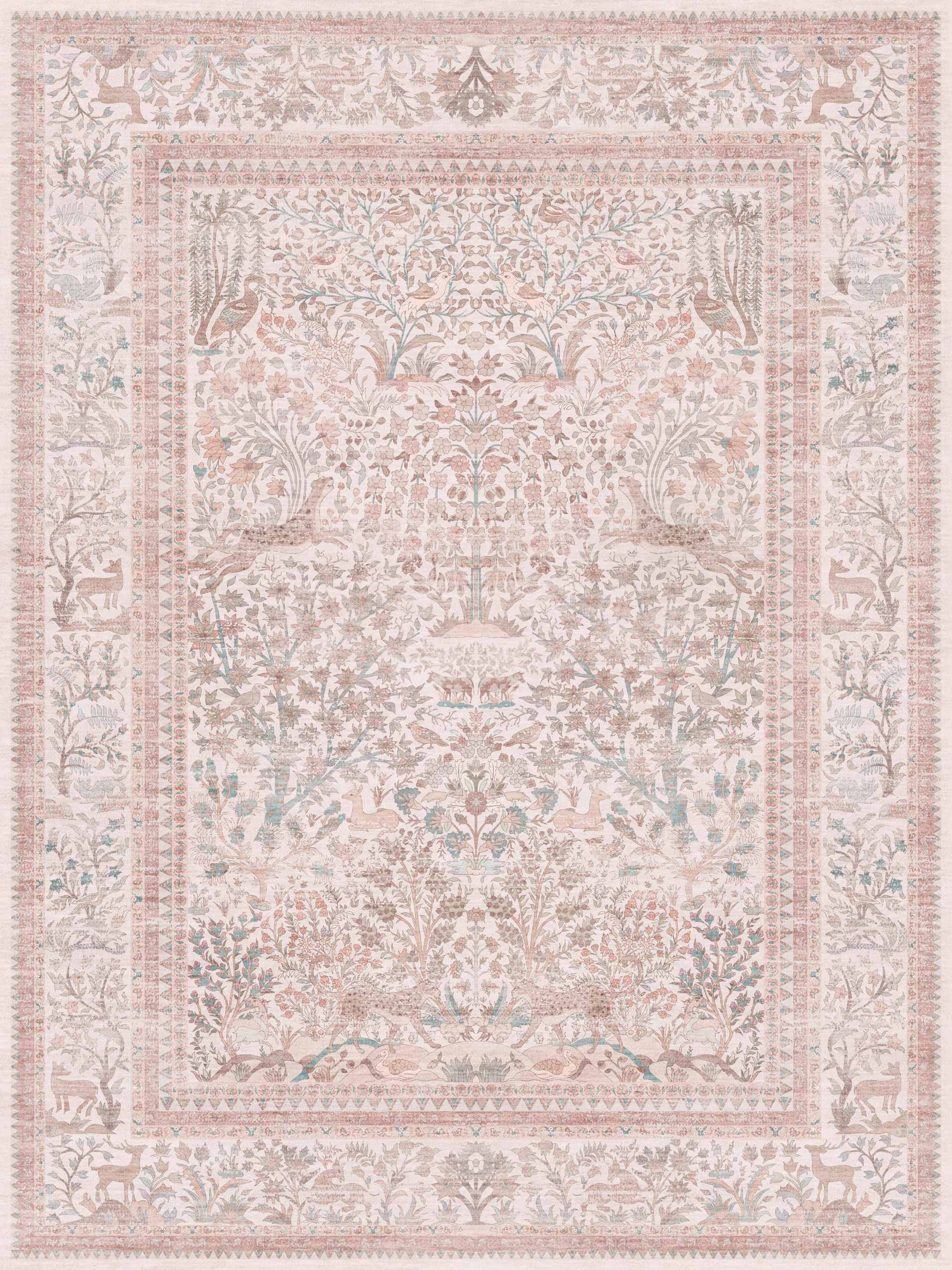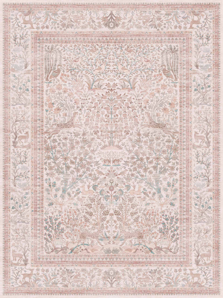 An ode to the serene soul of nature. The Lynn collection draws inspiration from the tranquil depths of forest springs and the intricate beauty of antique brocade. Each rug is a harmonious universe of ornate motifs, where delicate florals and scrolling vines intertwine in a classical dance. The palette moves from the delicate blush of a blooming peach grove to the profound stillness of a jade-dark pool, each hue evoking a different facet of a timeless landscape.
