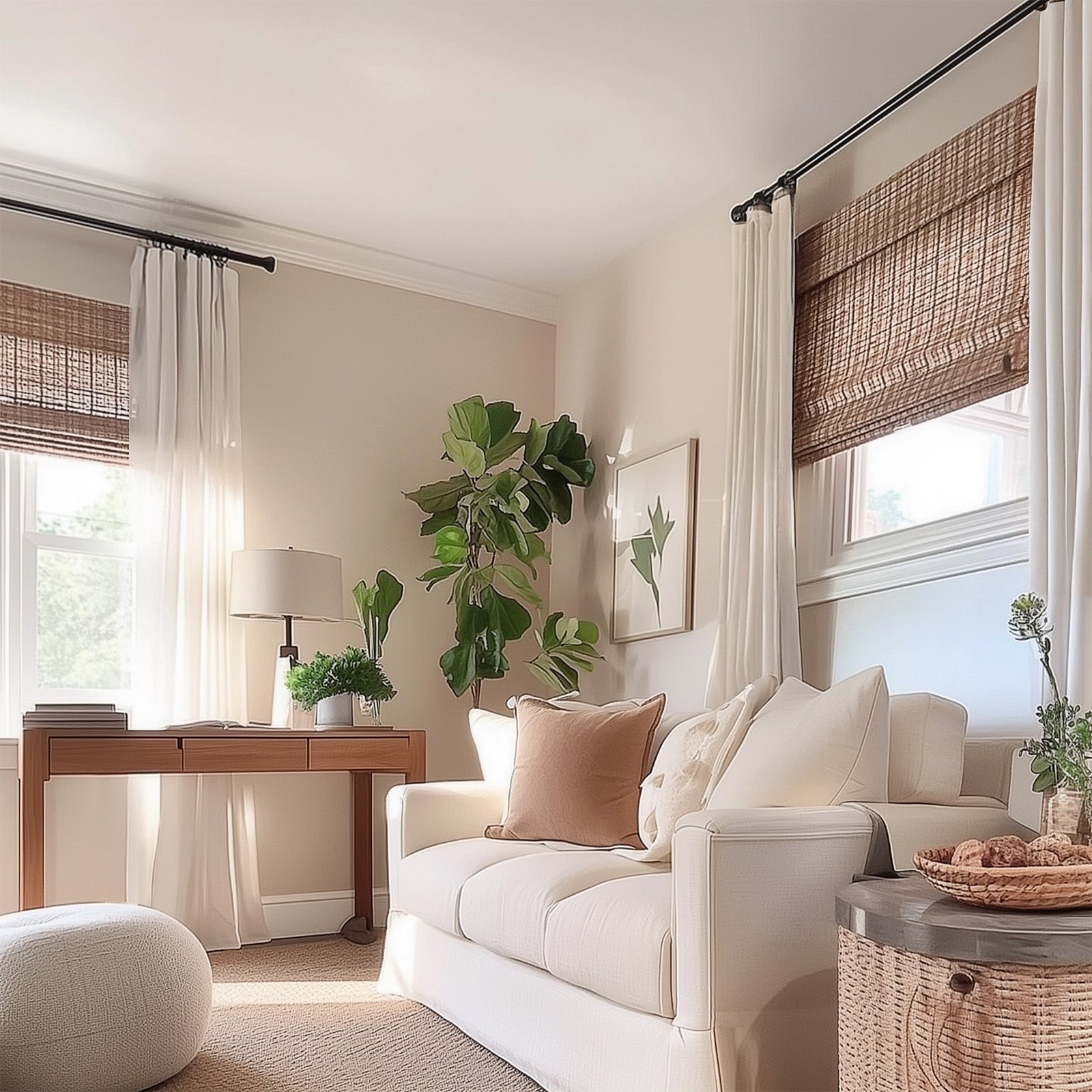 These bamboo shades exude a sense of peace, tranquility, neutrality, softness, elegance, comfort, and luxury that elevates the ambiance of any home.