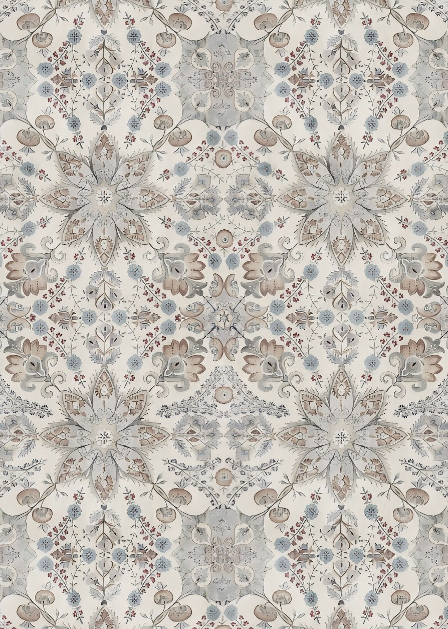 It showcases a refined and intricate floral damask pattern, inspired by classic heritage designs. The soft, muted tones and symmetrical detailing bring a sense of sophistication and balance to your space. Perfect for enhancing both traditional and modern interiors, this rug exudes timeless charm and understated luxury.
