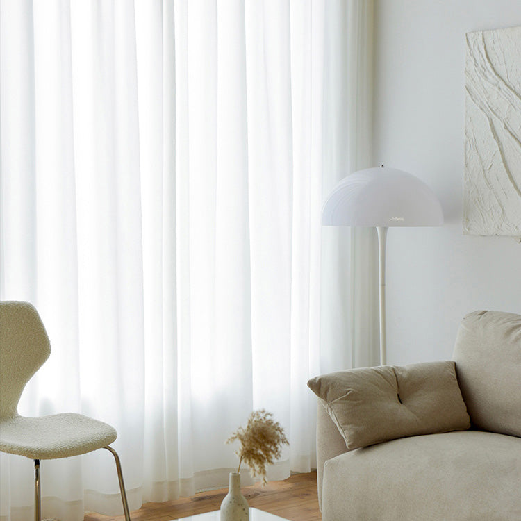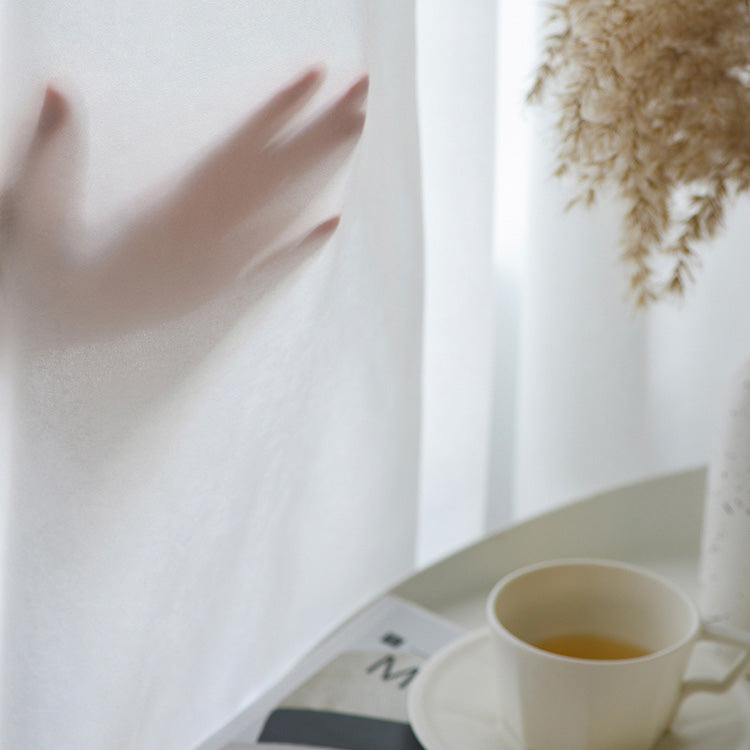 Texture: Soft, smooth linen with a delicate, almost weightless feel, offering a subtle, sheer finish that gently filters light for a soft, airy effect