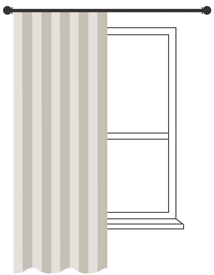 Tailor pleats are more gathered than other headings and have permanent sewn-in pleats. Panel width is the width that pleats already set. It works for the track, traverse rod, channel rod, and pole with rings.