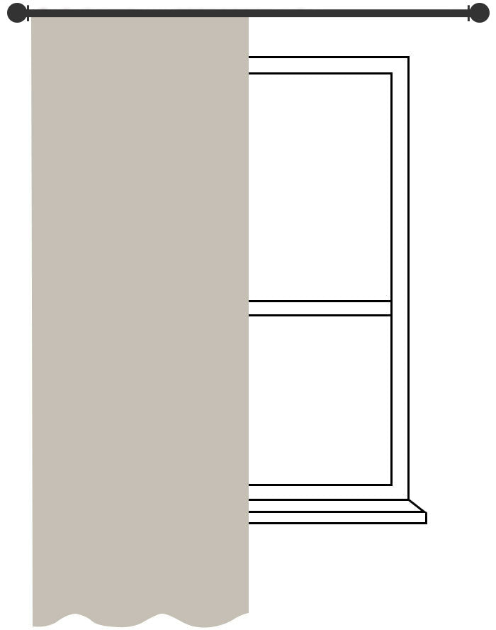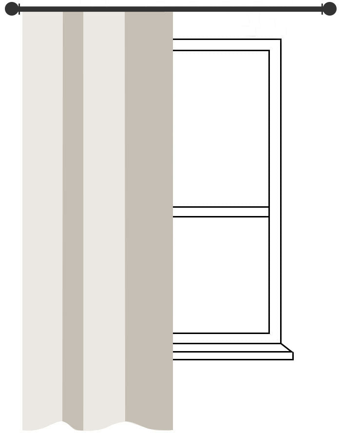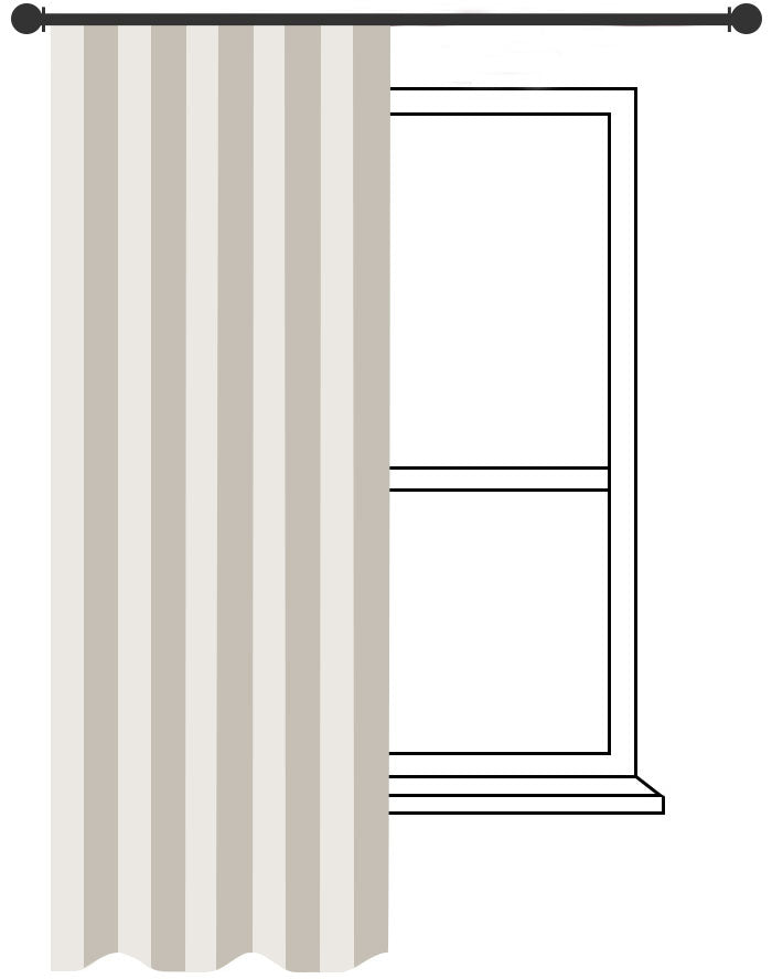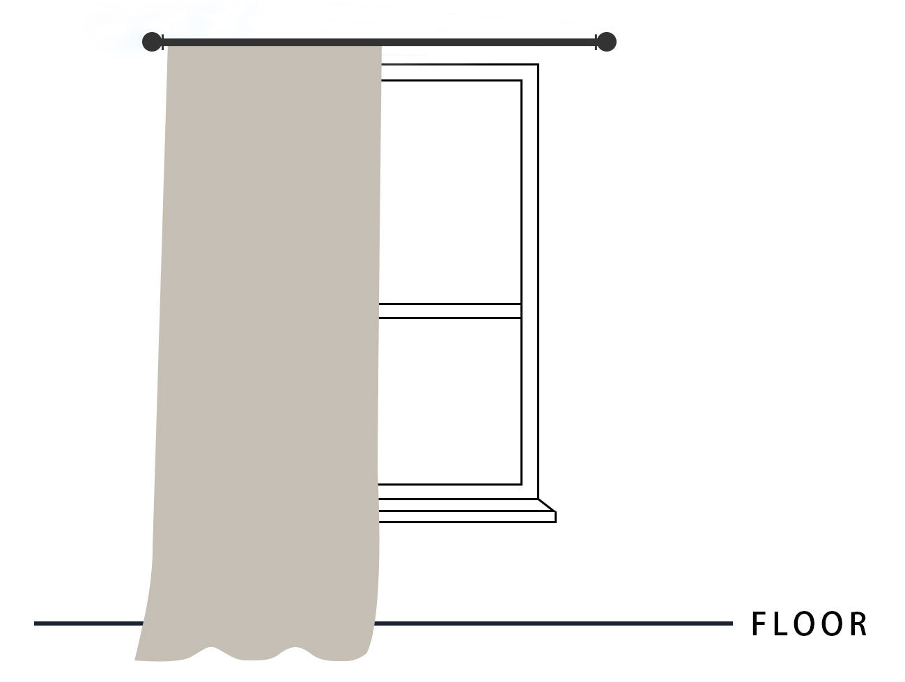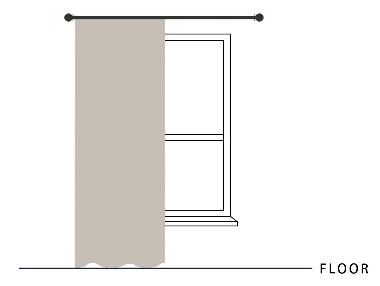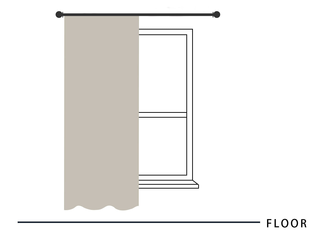 For a tailored, clean, and contemporary finish, raise the hems ¼ inch above the floor.